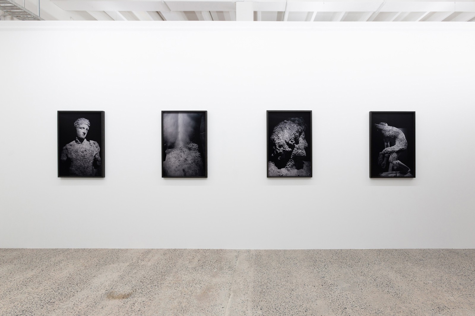 Comprising six black and white photographs, The Antikythera Group represents a group of dramatically excoriated figures that lay on the Aegean seabed for approximately 2000 years before being brought to the surface and into the collection of the National Archaeological Museum at Athens.