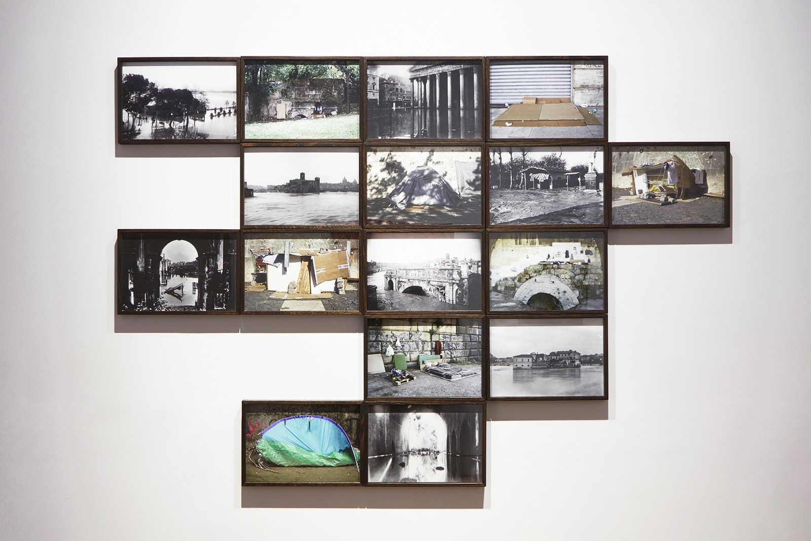 Eight archival images of the swollen Tiber river and the flooded monuments of Rome are paired with contemporary images of ephemeral dwellings created by individuals and small communities that live together in the full face of vulnerability along the river’s banks.