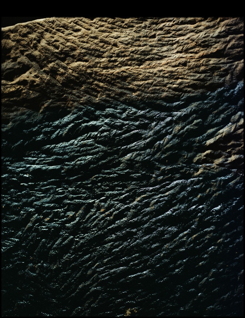 Created around 2500 BCE, this remarkable complex retains many of it’s secrets. Recent archaeoastrological findings reveal that a light ray filtering through the oculus acts as a sundial, and that a hole on the southern side of the main chamber allows a light ray to penetrate the space illuminating the centre point of the main chamber’s oval floor on the equinox. These light transition phenomena have relationships with the light rays that travel through the oculus of the Pantheon at Rome (orginally a polythestic temple), and more contemporary light activating environments such as those by the American artist James Turrell, notably Roden Crater (1977-ongoing), and Nancy Holt’s artwork Sun Tunnels (1973-1976). Hazewinkel worked with the natural light penetrating the chamber complex to capture this image which represents the residual, rhythmic marks of a repetitive movement, inscribed into the bedrock through a gesture, that is for the artist, simultaneously excavation and sculpture.