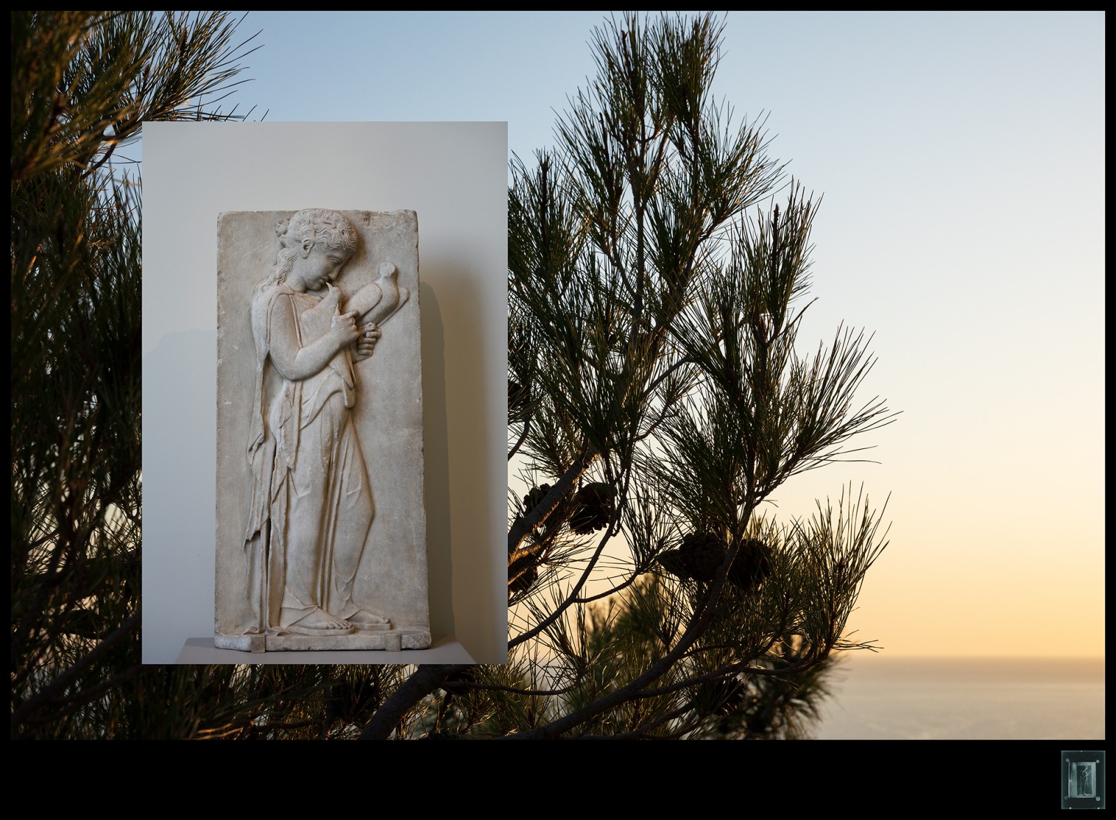 There is another image reproduced here, it represents a plaster copy of Dovegirl’s stele as it stands today in the sunlit courtyard of the small overlooked Archaeological Museum of Paros. If you find yourself on Paros, pay her a visit, take a moment to look into the sky and enjoy the abundant birdsong.