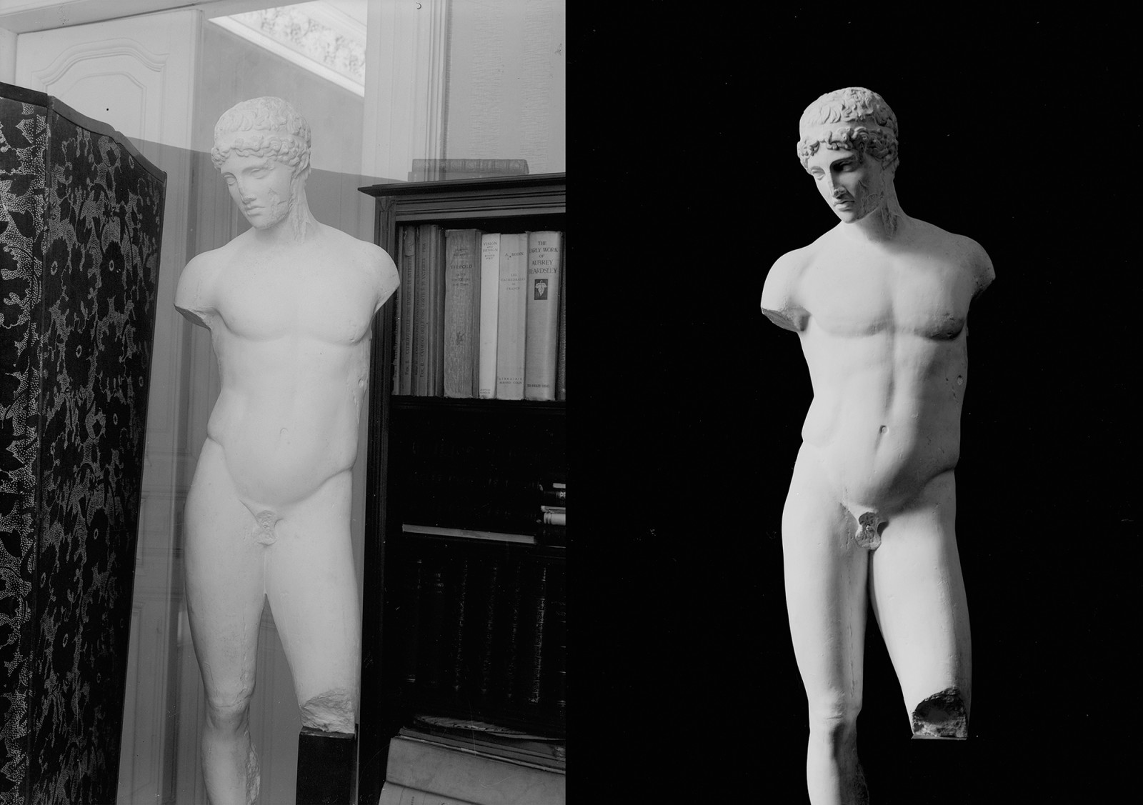 For me, the temporal distance between the making of Greek bronze and its Roman marble copy is occupied by questions that revolve around the motivations for making art objects and the social, political and cultural implications of the places they are made for. The original bronze was created to commemorate a young man’s victory at games; it mostly likely stood outdoors amongst trees in a sanctuary. The Roman version was made to satisfy the emergent Imperial thirst for sensual objects to decorate their bathhouses and the villas of the wealthy. So why did I make this photograph? I made it for Marshall who, through my sustained engagement with the images that he collected and commissioned, I feel like I have got to know. We are both gay men and I suspect we would have got along. However his life was lived at a time when our sexuality required codification, his archive can be read as an entanglement of that, and although I don’t agree with his museological politics, I understand and celebrate his desires.