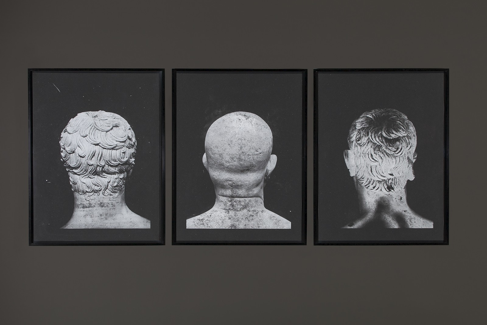 Comprising image details drawn from three late nineteenth century glass plate photographic negatives, screen-printed onto large sheets of carborundum sandpaper, each panel of this triptych sparkles softly like a night sky as it connects three distinct periods dispersed across a vast expanse of historical time. The periods this work connects are the first and second centuries CE in which the roman sculptures, represented here, were made; the period that followed their unearthing during which they were first photographed, late ninteenth and early twentieth centuries CE. And our contemporary period in which Hazewinkel created this triptych, the early twenytfirst century CE.