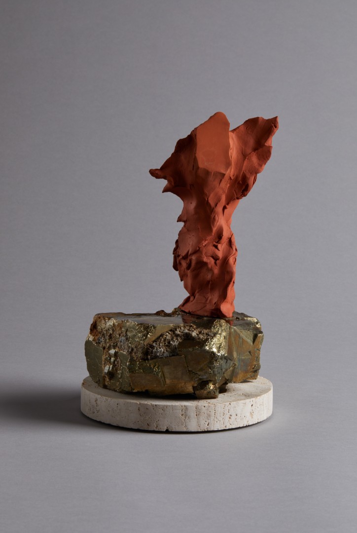 selectively burnished terracotta, pyrite, travertine 28 x 12.5 x 12.5 cm