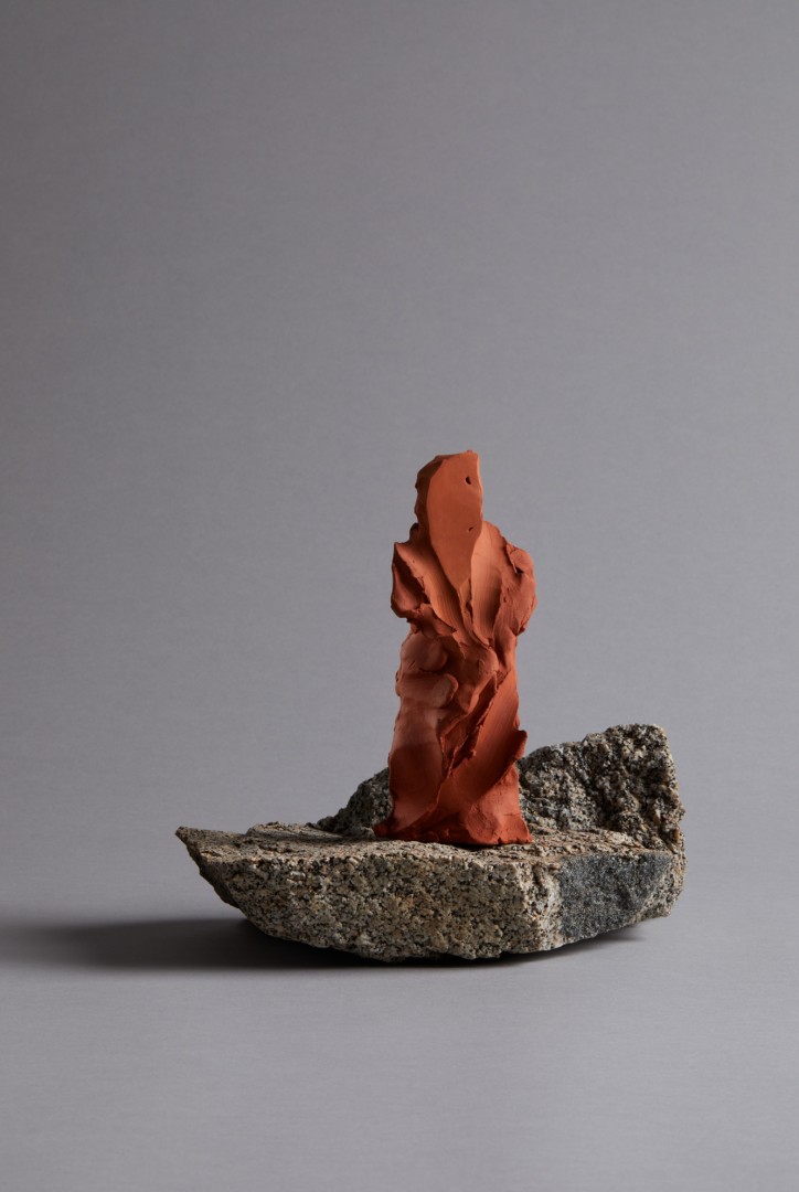 selectively burnished terracotta, Anafi granite 25 x 25 x 20 cm