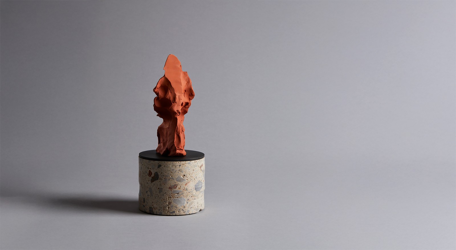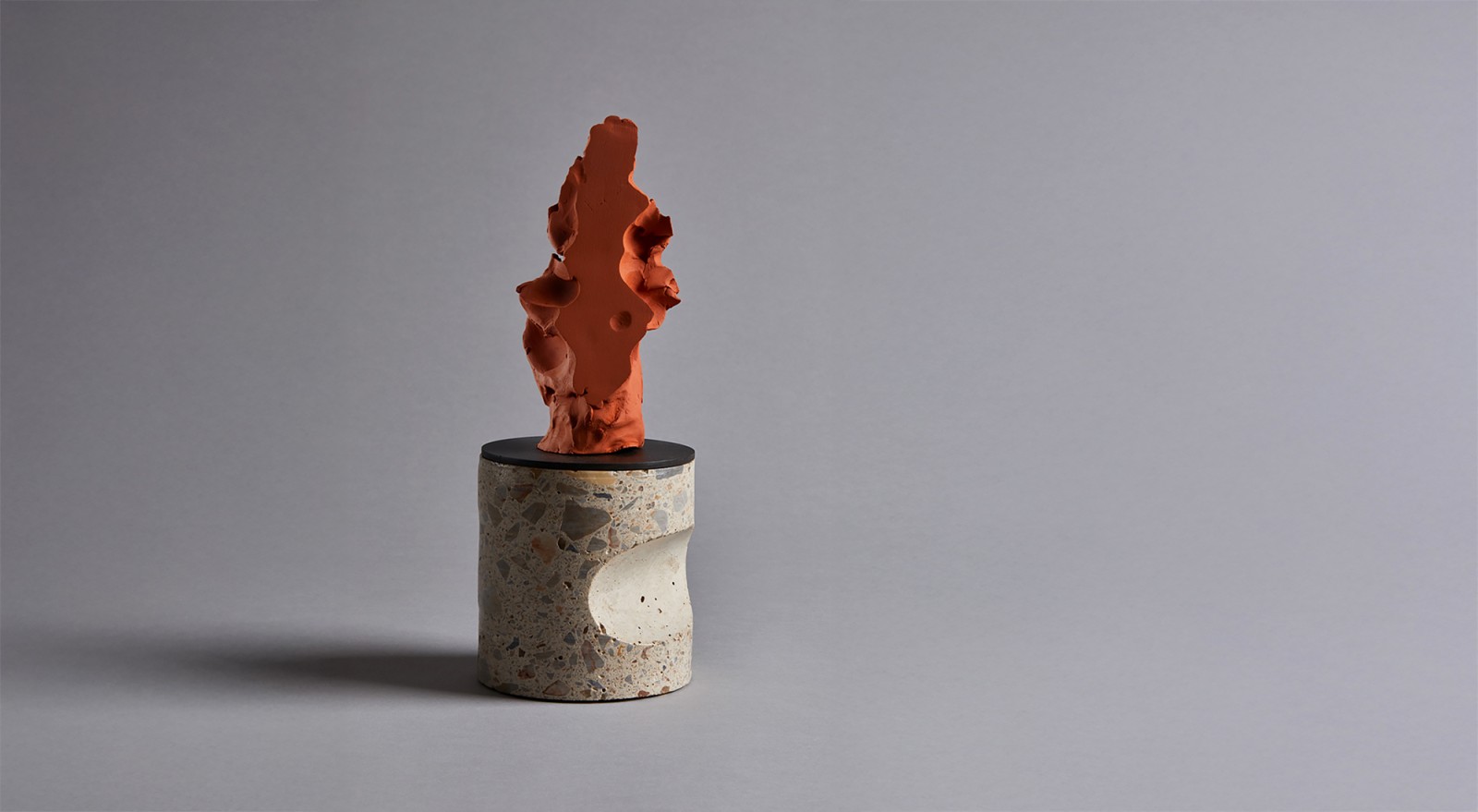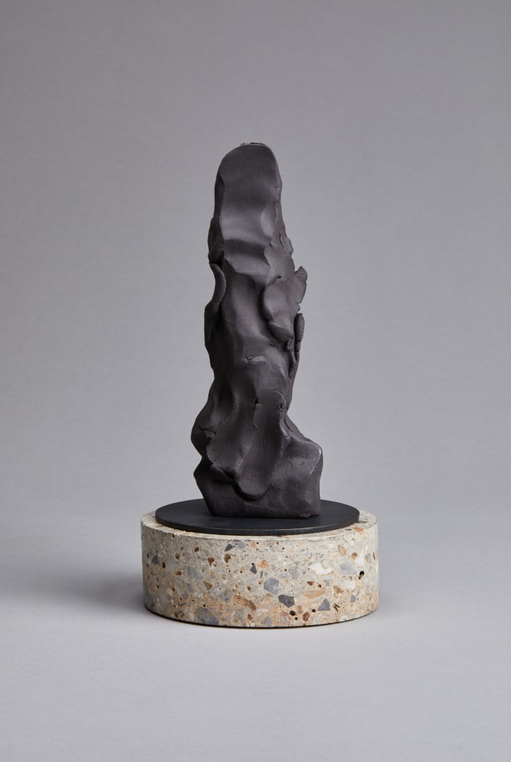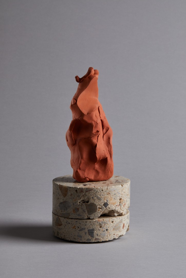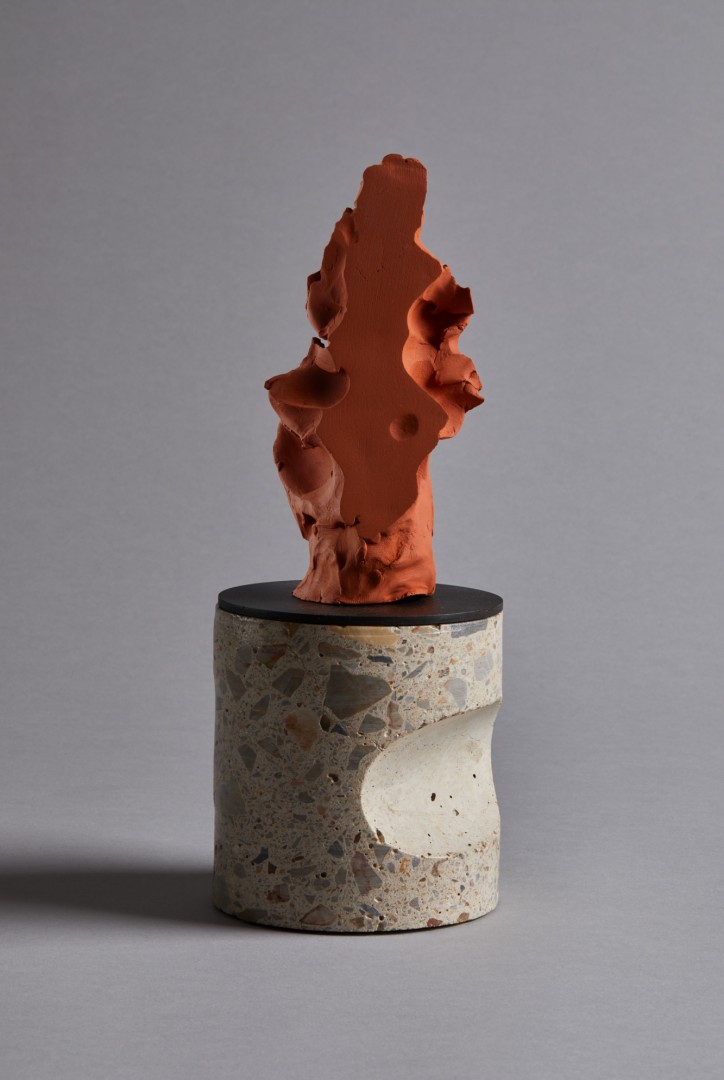 selectively burnished terracotta, marble aggregate concrete, blackened steel 27.5 x 10.5 x 10.5 cm