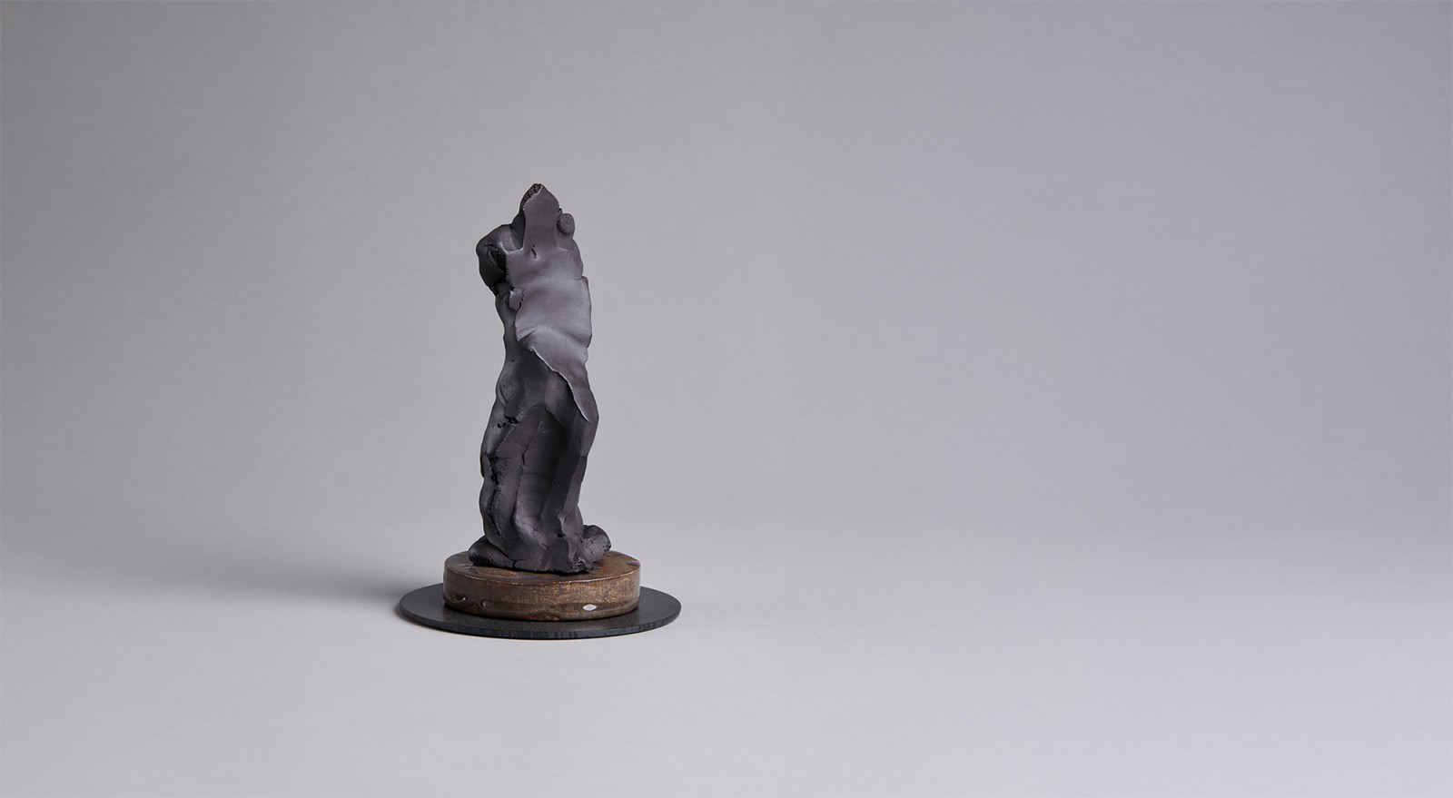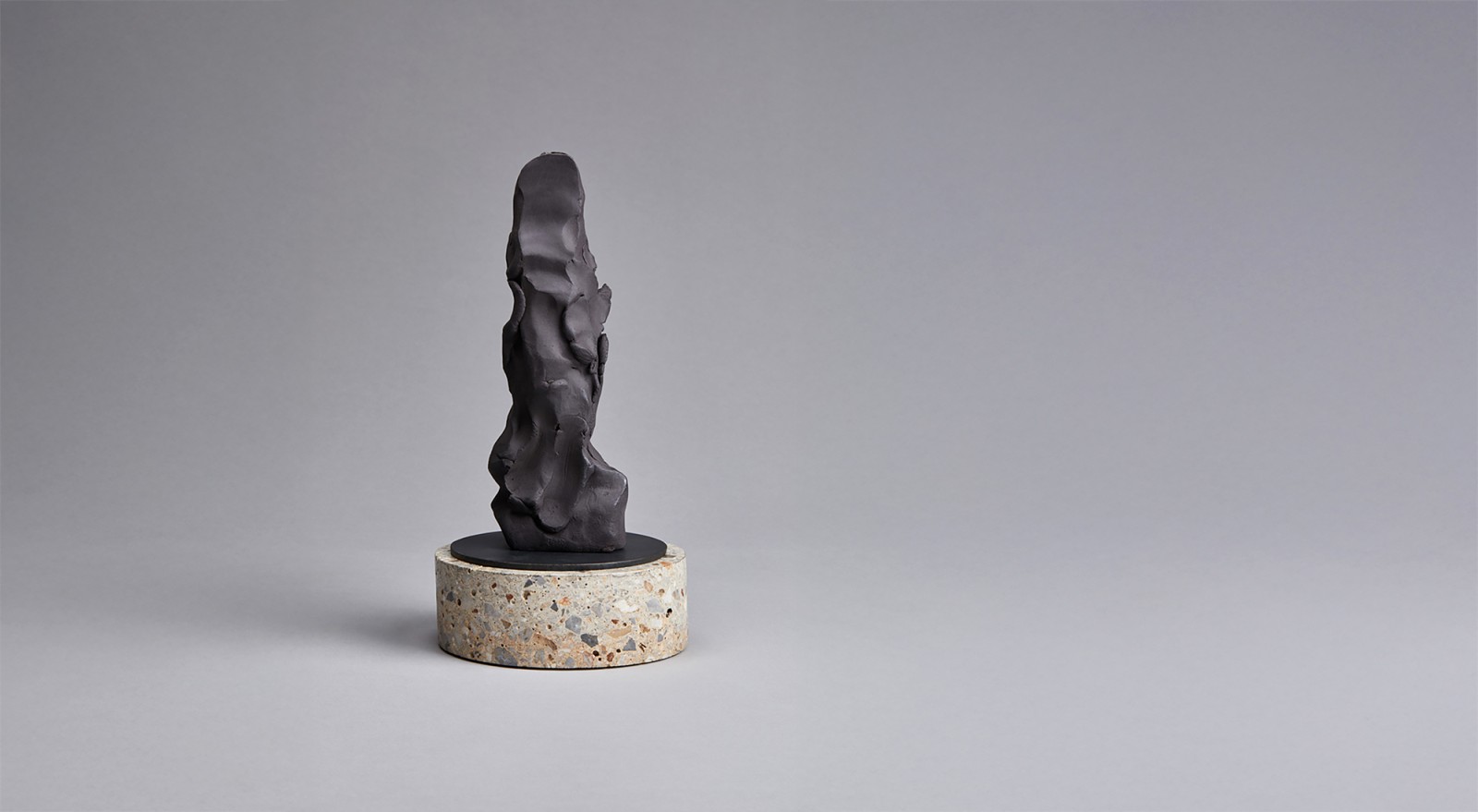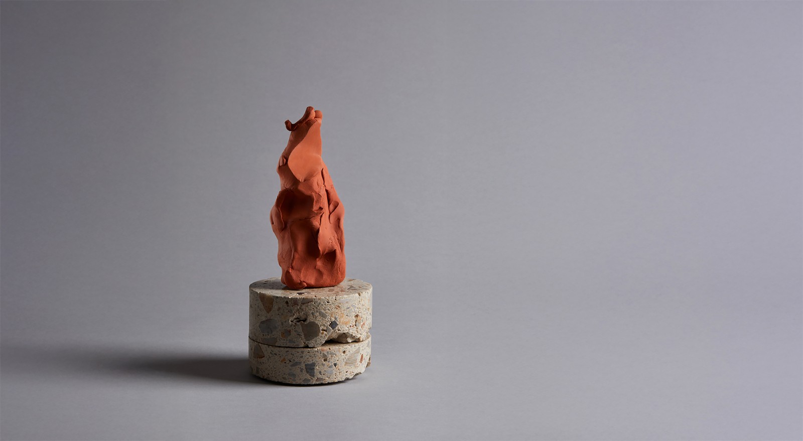 selectively burnished terracotta, marble aggregate concrete, blackened steel 27.5 x 10.5 x 10.5 cm