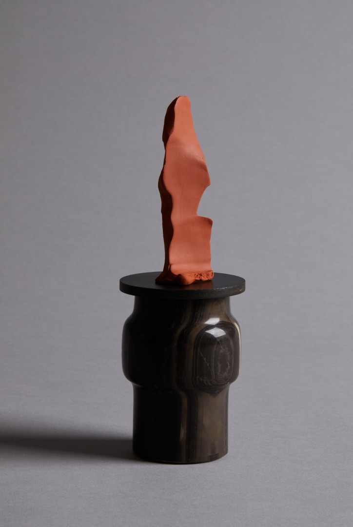 selectively burnished terracotta, blackened steel, onyx 11. x 4.8 x 4.8 cm