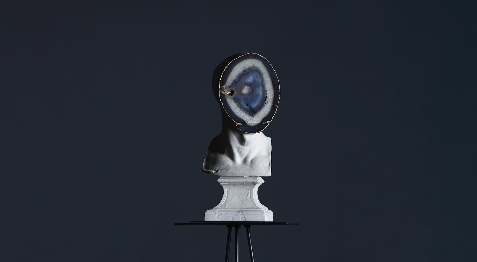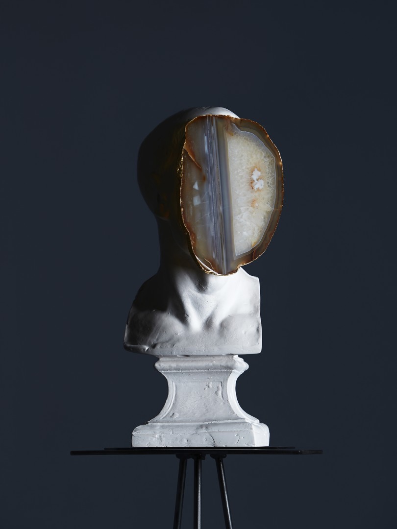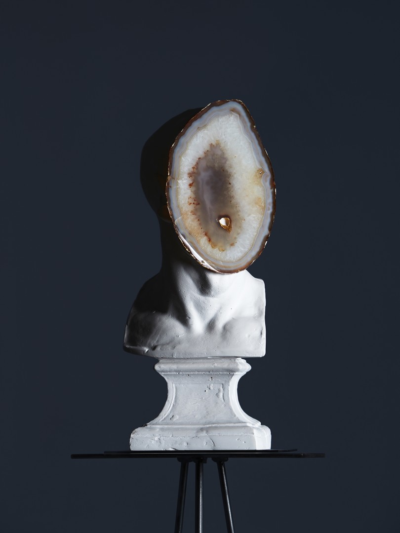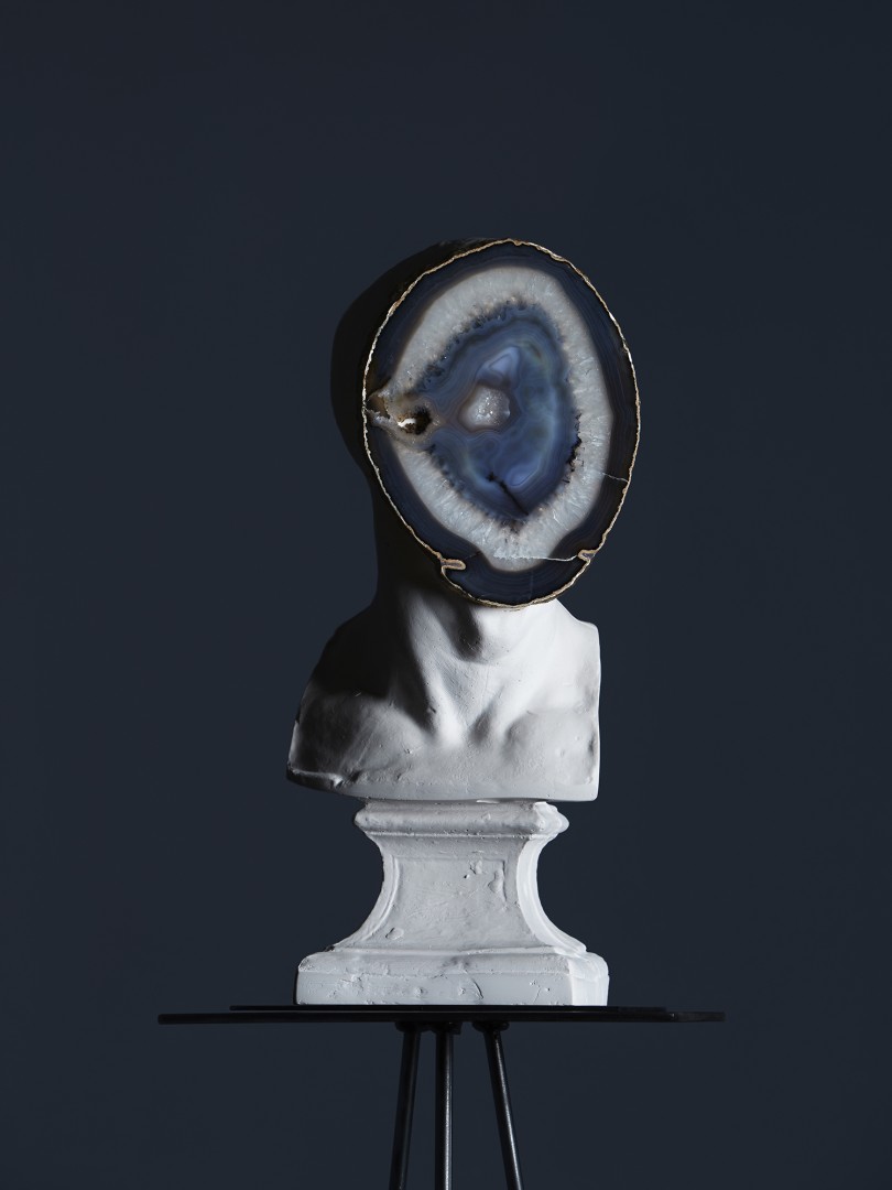 gypsum cement, titanium pigment, agate, gold leaf, silver leaf, blackened steel